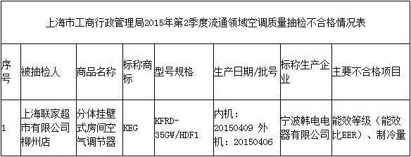 10日,上海市工商行政管理局在其官網(wǎng)公布空調(diào)質(zhì)量抽檢情況,標(biāo)稱商標(biāo)為“KEG”的一個(gè)批次分體掛壁式房間空氣調(diào)節(jié)器被檢出不合格。 近期,上海市工商局集中組織力量對(duì)徐匯區(qū)、楊浦區(qū)、嘉定區(qū)、松江區(qū)等部分區(qū)域19家超市、1家商場(chǎng)銷售的20個(gè)批次各種類型掛壁式、落地式、定頻、變頻等空調(diào)進(jìn)行了市場(chǎng)檢查和質(zhì)量抽檢。經(jīng)檢測(cè),有1個(gè)批次不合格,不合格項(xiàng)目是能效等級(jí)(能效比)和制冷量。 抽檢發(fā)現(xiàn),上海聯(lián)家超市有限公司柳州店銷售的標(biāo)稱由寧波韓電電器有限公司生產(chǎn)的“KFG”牌分體掛壁式房間空氣調(diào)節(jié)器(型號(hào)規(guī)格:KFRD-35GW/HDF1;生產(chǎn)日期或批號(hào):內(nèi)機(jī)20150409、外機(jī)20150406),能效等級(jí)實(shí)測(cè)為2.45(w/w)(企業(yè)標(biāo)稱能效等級(jí)為3級(jí),標(biāo)準(zhǔn)要求應(yīng)≥3.20(w/w))。 據(jù)介紹,空調(diào)能效等級(jí)分成1、2、3三個(gè)等級(jí)。能效等級(jí)越高(1級(jí)最高),能耗越少,越省電。通過能效等級(jí)高低,消費(fèi)者可以清楚的了解能耗情況。虛標(biāo)能效等級(jí),容易誤導(dǎo)消費(fèi)者,違背了消費(fèi)者購買節(jié)能產(chǎn)品的初衷。 抽檢還發(fā)現(xiàn),該批次空氣調(diào)節(jié)器制冷量實(shí)測(cè)為80.1%(標(biāo)準(zhǔn)要求實(shí)測(cè)制冷量不小于額定制冷量的95%(額定制冷量為3500W))。制冷量即制冷能力,該指標(biāo)不合格,雖然不會(huì)產(chǎn)生安全隱患,但降低了空調(diào)的使用效果,影響消費(fèi)者正常使用。 根據(jù)抽檢結(jié)果,工商部門已責(zé)令相關(guān)經(jīng)營(yíng)者立即下架并停止銷售不合格商品,依法對(duì)銷售不合格商品的經(jīng)營(yíng)者立案調(diào)查。同時(shí),工商部門提醒消費(fèi)者在選購空調(diào)時(shí)要注意以下幾點(diǎn): 一、空調(diào)是國(guó)家3C強(qiáng)制認(rèn)證產(chǎn)品,所有在售商品均應(yīng)在顯著位置加貼3C認(rèn)證標(biāo)志。消費(fèi)者購買時(shí)應(yīng)注意查看3C標(biāo)志,并選擇售后服務(wù)完善的品牌企業(yè) 二、空調(diào)的能效等級(jí)分為三級(jí),其中,1級(jí)最節(jié)能,3級(jí)最耗電。消費(fèi)者購買空調(diào)時(shí),要認(rèn)準(zhǔn)能效標(biāo)識(shí)和標(biāo)注的等級(jí)。