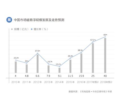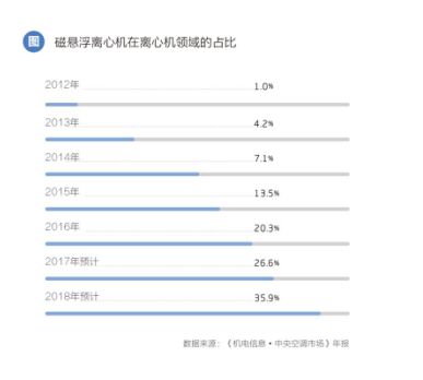 毫不夸張的講,正是憑借海爾的一己之力,叩開了磁懸浮中央空調(diào)在中國(guó)市場(chǎng)的大門?上驳氖,在今年的中國(guó)制冷展上,我們看到包括格力、美的在內(nèi)超過(guò)30家的廠商開始加入到磁懸浮離心機(jī)拓展的陣營(yíng)中。相關(guān)機(jī)構(gòu)預(yù)測(cè),到2018年底,磁懸浮離心機(jī)組在離心機(jī)的市場(chǎng)占有率有望接近40%,整體規(guī)模達(dá)到40億元,未來(lái)幾年內(nèi),磁懸浮離心機(jī)組都將保持60%左右的高增速,迎來(lái)徹底的爆發(fā)期。