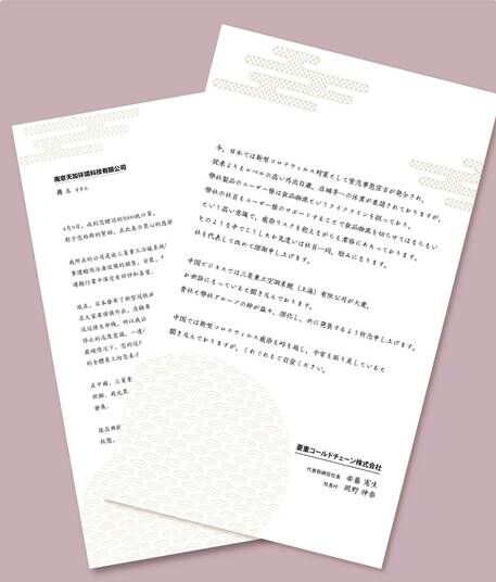 倡議發(fā)出至今,公司一直在陸續(xù)接收全體員工以及合作伙伴們的各類愛(ài)心捐贈(zèng),并快速啟動(dòng)了特殊時(shí)期的物流響應(yīng)方案。截至目前,第一批來(lái)自合作伙伴—南京天加環(huán)境科技有限公司捐贈(zèng)的安全防護(hù)口罩,已經(jīng)順利送到日本同仁們的手中,為他們帶去安全感和鼓勵(lì)。堅(jiān)信我們一定能真正戰(zhàn)勝疫情,在一個(gè)重現(xiàn)生機(jī)的世界里繼續(xù)加強(qiáng)跨國(guó)、跨地區(qū)事業(yè)合作,回報(bào)所有伙伴的支持和關(guān)愛(ài),共同發(fā)展前行。 來(lái)自安藤先生和岡野先生的感謝信