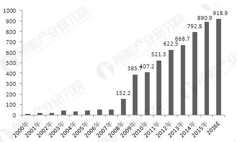 2008-2016年全球電化學(xué)儲(chǔ)能項(xiàng)目累計(jì)裝機(jī)規(guī)模(單位:MW)