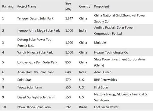 根據(jù)能源經(jīng)濟與金融分析研究所IEEFA的分析,因為建設(shè)新項目的成本下降,中國和印度正在推動全球大規(guī)模太陽能發(fā)電的快速發(fā)展。 IEEFA在一份報告中表示:“太陽能在推動全球發(fā)電市場持續(xù)轉(zhuǎn)型,存儲,風(fēng)能,水力發(fā)電和能源效率方面正在發(fā)揮越來越重要的作用。 根據(jù)IEEFA的統(tǒng)計,全球最大的經(jīng)營實用規(guī)模的太陽能項目集中在中國和印度,包括: