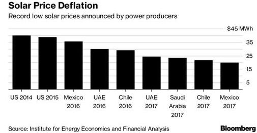 根據(jù)數(shù)據(jù),IEEFA表示,2017年全球新增太陽能裝機98吉瓦,中國占53吉瓦。同時,發(fā)電資產(chǎn)使用期間的單位電力成本同比下降15%,至86美元/兆瓦時。