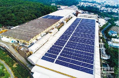南亞光電「屋頂型太陽能系統(tǒng)」實(shí)績案例,圖為臺中大肚廠。