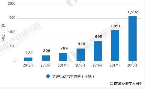 2012-2018年全球電動汽車銷量統(tǒng)計情況及預(yù)測