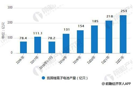 2016-2022年我國鋰離子電池產(chǎn)量統(tǒng)計(jì)情況及預(yù)測