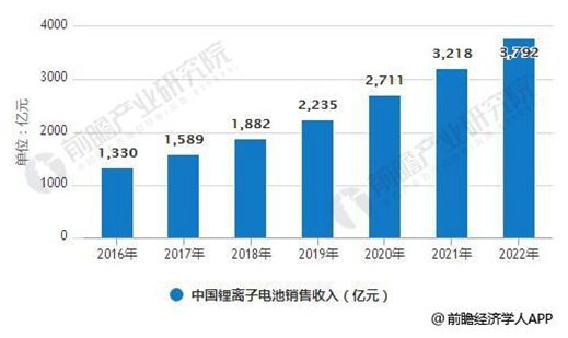 2016-2022年中國鋰離子電池銷售收入統(tǒng)計(jì)情況及預(yù)測
