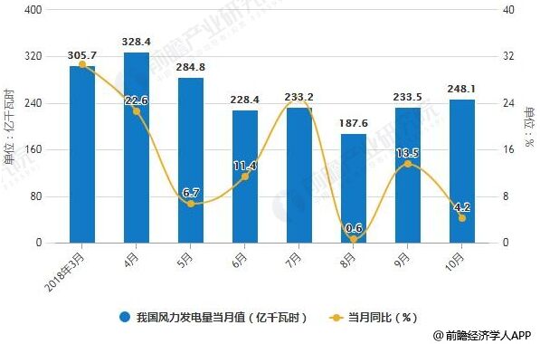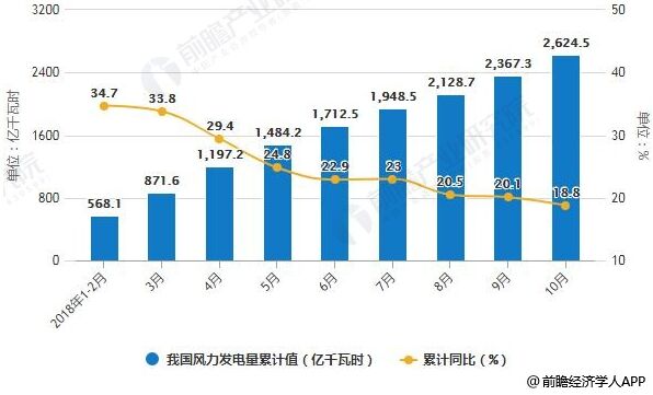 風電行業(yè)發(fā)展勢頭強勁 近年來,我國可再生能源發(fā)展駛入快車道,以風電為代表的新增主力發(fā)展勢頭強勁。據(jù)前瞻產(chǎn)業(yè)研究院發(fā)布的《中國風電行業(yè)市場前瞻與投資戰(zhàn)略規(guī)劃分析報告》統(tǒng)計數(shù)據(jù)顯示,2018年前三季度,全國風電新增并網(wǎng)容量1261萬千瓦,同比增長30%,風電累計并網(wǎng)裝機容量達到1.76億千瓦。風電裝機規(guī)模穩(wěn)步擴大的同時發(fā)電量也在不斷攀升。據(jù)前瞻產(chǎn)業(yè)研究院數(shù)據(jù),2018年1-10月份全國絕對發(fā)電量55816億千瓦時,其中2018年10月我國風力發(fā)電量達到248.1億千瓦時,同比增長4.2%。2018年1-10月風力發(fā)電量累計達到2624.5億千瓦時,累計增長18.8%。占全國電源總發(fā)電量的4.7%,風電正在不斷地鞏固我國第三大主力電源的地位。