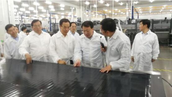 圖:龔正一行在李河君的陪同下考察漢能山東淄博基地