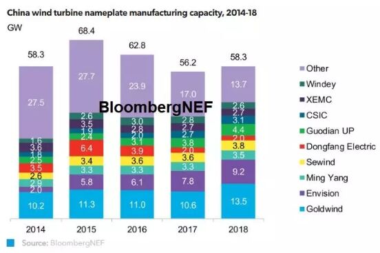 中國是全球最大也是產(chǎn)能最為過剩的風(fēng)機市場。在陸上風(fēng)電市場持續(xù)發(fā)展的同時,海上風(fēng)電將驅(qū)動下一輪的風(fēng)機產(chǎn)能增長。與此同時,激烈的市場競爭將進一步推動市場集中度提升,使國內(nèi)風(fēng)機產(chǎn)能集中在少數(shù)的風(fēng)電整機制造商當中。