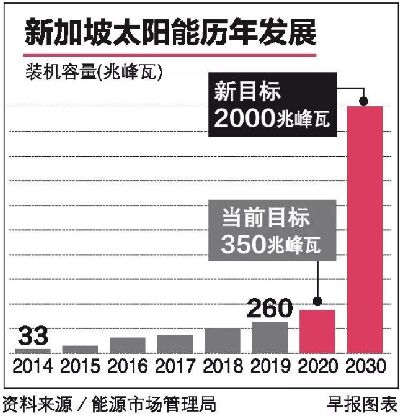 到了明年,新加坡全國每兩座組屋就有一座會裝有太陽能板。我國接下來將大幅擴大太陽能板安裝范圍,所產(chǎn)生的電量到2030年將能滿足約35萬戶家庭的常年用電需求。 政府本月初頒發(fā)的招標項目,要求在1218座組屋、30所中小學、國防部建筑和醫(yī)院、火化場和小販中心等安裝太陽能板。 貿(mào)工部長陳振聲10月29日在新加坡國際能源周開幕式上宣布,我國計劃在2030年將太陽能裝機容量(installed capacity)提高到至少2千兆峰瓦(GigaWatt Peak,簡稱GWp),朝低碳的可持續(xù)未來邁進。 這一目標相當于當前260兆峰瓦水平的近八倍。