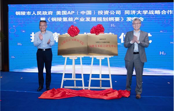 銅陵市委副書記、市長胡啟生,同濟大學燃料電池復合電源研究所所長張存滿共同為“安徽長江氫能研究院”和“氫能技術聯合研究中心”揭牌