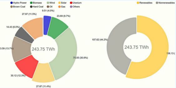 據(jù)外媒報(bào)道,近期受Covid-19疫情影響,德國的可再生能源電力份額激增至56%,其中風(fēng)電以30.6%的份額成為該歐洲最大經(jīng)濟(jì)體電力來源,光伏發(fā)電則達(dá)到11.7%。 根據(jù)弗勞恩霍夫太陽能系統(tǒng)研究所(Fraunhofer Institute for Solar energy Systems ISE)的數(shù)據(jù),在2020年上半年,由于Covid-19疫情而導(dǎo)致工業(yè)活動(dòng)減少,加上天氣條件良好,德國全國對能源的需求有所下降,這使得可再生能源在德國發(fā)電中的份額飆升至55.8%。
