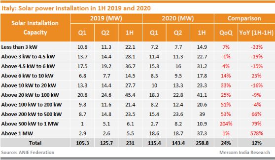 2020年上半年,意大利新增了339兆瓦的太陽(yáng)能,風(fēng)能和水力發(fā)電裝置,與2019年同期相比下降了39%。由于風(fēng)能遭受挫折,今年太陽(yáng)能和水力發(fā)電量是主要推動(dòng)力。