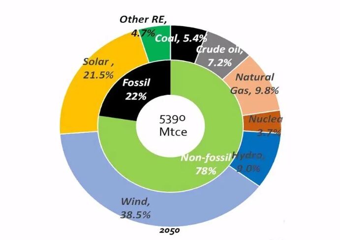 到2050年,中國風電將占到能源消費的38.5%,光伏占到21.5%,排在之后的就是天然氣占9.8%,水電占到9%。而能源轉(zhuǎn)型帶來的成本更多是近中期成本,其中包括可再生能源投資、電網(wǎng)靈活性改造等。國家發(fā)改委能源研究所可再生能源中心主任趙勇強說:“長期來說,電力系統(tǒng)的成本可以下降約20%,而且成本結(jié)構(gòu)將發(fā)生很大的變化!