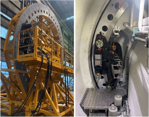 此次通用大兆瓦盤車工裝開發(fā)整體歷時(shí)6個(gè)月,由電氣風(fēng)電工程服務(wù)分公司裝備中心主持研發(fā)。該套工裝具有良好的通用性,可覆蓋電氣風(fēng)電直驅(qū)6/7/8MW機(jī)型。通用大兆瓦盤車?yán)米陨砀叨燃傻南到y(tǒng)算法,可實(shí)現(xiàn)機(jī)組葉輪在非平衡狀態(tài)下的旋轉(zhuǎn),同時(shí)綜合考量單支葉片和兩支葉片實(shí)際運(yùn)動(dòng)的動(dòng)載狀態(tài)和應(yīng)急工況下的載荷,確保盤車裝置能夠適應(yīng)現(xiàn)場復(fù)雜環(huán)境。
