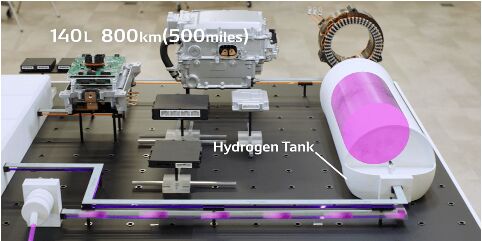 電裝研發(fā)的技術(shù)可實(shí)現(xiàn)一次性將140L的氫氣填充于儲(chǔ)氫罐內(nèi),可供行駛近800公里。傳統(tǒng)的儲(chǔ)氫罐填充滿需10分鐘,現(xiàn)可通過高壓供給氫,填充時(shí)間縮短至3分鐘。在氫氣填充過程中,通過罐內(nèi)的高精度溫度傳感器即刻感知溫度變化,結(jié)合氫站的填充系統(tǒng)和紅外線傳感器,實(shí)現(xiàn)緊密配合,由此可實(shí)現(xiàn)更安全、快速的氫氣填充。