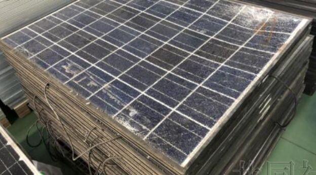 圖為運(yùn)至回收工廠的太陽(yáng)能電池板。3月攝于京都府八幡市。由株式會(huì)社濱田供圖。