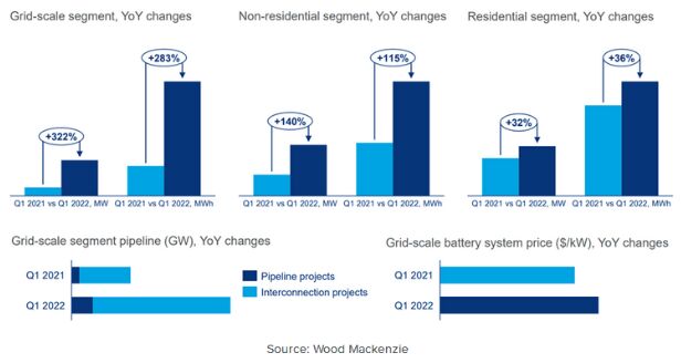 Wood Mackenzie公司電池儲能業(yè)務(wù)的高級分析師表示,2022年第一季度是美國迄今為止電網(wǎng)規(guī)模儲能系統(tǒng)部署量最高的一個季度,這是一個里程碑。