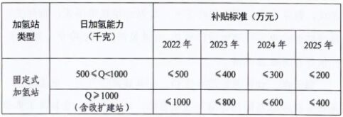 四、實(shí)施加氫站運(yùn)營補(bǔ)貼。對于氫氣零售價(jià)格不超過每千克35元的加氫站,按照每年氫氣實(shí)際銷售量實(shí)行逐年退坡的運(yùn)營補(bǔ)貼政策,每年每座加氫站氫氣運(yùn)營補(bǔ)貼最高不超過200萬元。