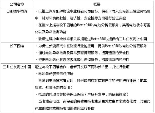 自2023年7月起,松下控股株式會社與北京四維圖新科技股份有限公司共同投資成立的松下四維出行科技服務(wù)(北京)有限公司(以下簡稱“松下四維”),攜手三井住友海上火災(zāi)保險(中國)有限公司※1(以下簡稱“三井住友海上中國”)和日郵振華物流(天津)有限公司※2(以下簡稱“日郵振華物流”),在天津一工業(yè)園區(qū)內(nèi),開始使用新能源重卡進行汽車配件運輸測試。