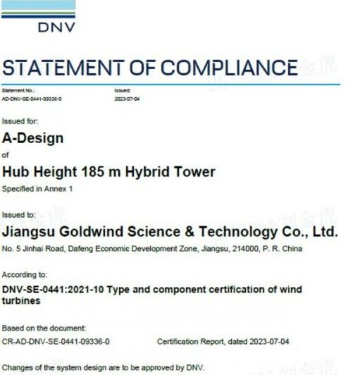 技術(shù)領(lǐng)先,權(quán)威認(rèn)可。目前,金風(fēng)科技185米鋼混塔架已經(jīng)獲得DNV A-level設(shè)計(jì)認(rèn)證證書,這也是金風(fēng)科技在鋼混塔架領(lǐng)域繼95米鋼混塔架獲UL認(rèn)證、140米鋼混塔架獲DNV認(rèn)證后獲得的第三張國(guó)際認(rèn)證證書。當(dāng)前,金風(fēng)科技鋼混塔架產(chǎn)品已累計(jì)獲得產(chǎn)品設(shè)計(jì)認(rèn)證及型式認(rèn)證30項(xiàng),全面覆蓋公司的主流機(jī)型平臺(tái)。