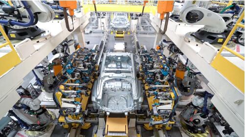 這座占地面積1174畝,建筑面積34.5萬平方米,規(guī)劃年產(chǎn)能30萬輛乘用車的“超級生產(chǎn)車間”里,由AGV串聯(lián)起的各生產(chǎn)島臺有序作業(yè),實現(xiàn)大規(guī)模柔性定制和混線排產(chǎn),同時生產(chǎn)領(lǐng)克01、01全球版、領(lǐng)克05、領(lǐng)克08車型。