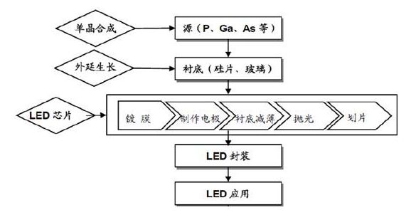 近年來,隨著LED技術(shù)發(fā)展,半導體照明以其突出的節(jié)能和環(huán)保特性正在照明領(lǐng)域掀起第二次革命。LED是一種能夠?qū)㈦娔苻D(zhuǎn)化為光能的半導體器件,具有節(jié)能、環(huán)保、安全、壽命長、防震、便于智能控制等特點。20世紀90年代,隨著材料技術(shù)的發(fā)展,藍、綠和基于藍光的白光LED被研制出來并逐步產(chǎn)業(yè)化。隨著技術(shù)進步,LED 發(fā)光效率不斷提高,LED照明應用領(lǐng)域越來越廣,目前已被廣泛應用于戶外照明、景觀照明、室內(nèi)照明和特種照明等領(lǐng)域。 一、照明行業(yè)轉(zhuǎn)型 LED受寵 Light Emitting Diode (LED),即發(fā)光二極管,是一種固態(tài)的半導體器件,它可以直接將電轉(zhuǎn)化為光。LED 照明始于20世紀60年代,隨著技術(shù)的快速進步,LED的發(fā)光效率已經(jīng)超過了熒光燈。因此,LED是繼白熾燈、熒光燈、節(jié)能燈之后第四次人類照明方式的革命。LED 具有節(jié)能、環(huán)保、耗電量少、壽命長、色彩豐富、耐震動、可控性強等特點,廣泛應用于家用電器、儀器儀表、消費電子、室內(nèi)照明、景觀照明等多個領(lǐng)域。近年來,由于各國節(jié)能意識增強、LED技術(shù)逐漸成熟以及LED芯片成本快速下降所帶來的大規(guī)模應用等原因,全球范圍內(nèi)照明行業(yè)正在從傳統(tǒng)照明技術(shù)向LED轉(zhuǎn)型。 二、LED產(chǎn)業(yè)鏈:上游利潤高 LED 產(chǎn)業(yè)鏈包括外延片、芯片、封裝和應用,其中外延和芯片是關(guān)鍵。 上游是先從單晶作為成長用的基板,再利用各種的外延生長法(如LPE、MOCVD、MBE 等) 做成外延片,把這些外延片送給中游制作電極,進行平臺蝕刻后切割外延片,最后再將外延片崩裂成單顆芯片,中游再把芯片交給下游封裝,封裝完成的LED 成品依各種市場需求包裝成各種應用產(chǎn)品,如指示燈、數(shù)字顯示器、點矩陣顯示器、紅外線發(fā)射器等產(chǎn)品。 LED 產(chǎn)品中外延片和芯片是關(guān)鍵,產(chǎn)品利潤占比較高。LED 芯片的生產(chǎn)過程就是把外延片生產(chǎn)成單個LED 芯片的過程,這一過程主要是由金屬蒸鍍、金屬電極制作、襯底減薄、拋光、劃片等一系列集成電路制造工藝組成,最后再經(jīng)過測試和篩選, 根據(jù)芯片的性能進行分類。LED 芯片生產(chǎn)技術(shù)主要體現(xiàn)在芯片制造這一系列流程上的工藝技術(shù),工藝技術(shù)的高低直接影響到芯片的質(zhì)量和成品率。 附圖:LED產(chǎn)業(yè)鏈圖
