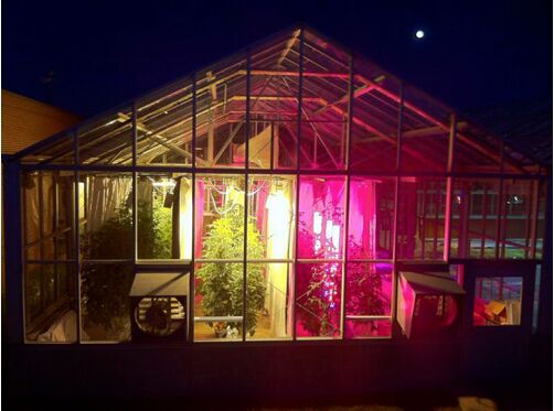 溫室栽種的番茄得到自然陽光照射輔以LED植物生長燈光源。