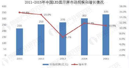 我國LED顯示屏產業(yè)的技術基礎和水平是相當先進的,主要產品和關鍵技術與國際同行業(yè)的先進水平能夠大致保持一致。LED器件技術和性能不斷提高,電子技術發(fā)展日新月異,這為LED顯示屏產品的技術深化和提高帶來良好的基礎。同時LED顯示在社會生活的各個領域得到了廣泛的應用,半導體照明產業(yè)的發(fā)展更為LED顯示產業(yè)帶來良好契機,因此,LED顯示市場發(fā)展前景樂觀。 LED產業(yè)鏈主要包括原材料、設備,上游芯片制造,中游LED封裝以及下游LED應用。而下游LED應用又主要分為LED照明,LED顯示屏以及LED背光應用等。LED應用是整個產業(yè)鏈中能夠帶來較高附加價值的重要一環(huán)。 目前,LED下游應用中市場規(guī)模最大的是照明領域,其次是背光應用和顯示屏。顯示屏應用規(guī)模仍維持一個相對穩(wěn)定快速增長趨勢,尤其是隨著小間距LED顯示屏技術的成熟,LED顯示屏應用將逐漸從室外超大尺寸顯示應用走向室內,應用領域將會顯著拓寬,預計未來幾年將會保持非常高速的增長速度,從而使得LED顯示屏在整個下游應用產業(yè)鏈中的占比逐漸提升。 據前瞻產業(yè)研究院《中國LED行業(yè)市場前瞻與投資戰(zhàn)略規(guī)劃分析報告》數據顯示,2015年全國LED顯示應用行業(yè)市場銷售規(guī)模較2014年度有新的增長,全年市場總量預計將達335億元,增長幅度在10%左右。