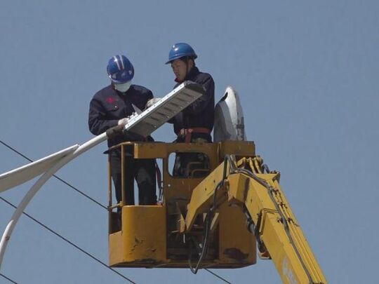 4月24日,在煙臺(tái)萊州市區(qū)光州西街,記者看到,四輛高空作業(yè)車一字排開,住建局路燈管護(hù)中心的工作人員正在更換老舊燈頭,記者了解到,光州西街路燈老化,已經(jīng)到了更換的時(shí)間,此次全部更換成節(jié)能的LED路燈,也將大大提高路燈的使用效率。煙臺(tái)萊州市路燈管護(hù)中心工作人員徐偉蓬介紹說(shuō),“近兩年來(lái),萊州市陸續(xù)推行LED路燈的安裝應(yīng)用,從目前情況來(lái)看,LED燈環(huán)保節(jié)能、光效高、壽命長(zhǎng),減少了交通隱患,提高了路燈能源的利用率,節(jié)省了運(yùn)行經(jīng)費(fèi)”。
