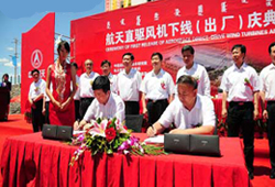 航天直驅風機下線合作簽約儀式現(xiàn)場。