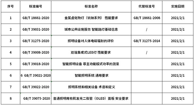 近日,國家市場監(jiān)督管理總局(國家標準化管理委員會)批準發(fā)布一批重要國家標準,其中推薦性標準199項,涉及照明、家居用品、民用飛機、智能制造等諸多領域。 其中,照明類包括“照明設備對人體電磁輻射的評價”、“雙端集成式LED燈 性能要求”等8項相關(guān)的國家推薦性標準。本次發(fā)布的照明相關(guān)標準將于2021年2月1日起正式實施。
