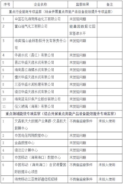 2022年海南省國家工業(yè)節(jié)能監(jiān)察結(jié)果公示表