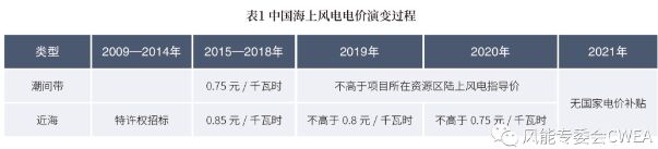 2015年以前,我國(guó)海上風(fēng)電電價(jià)政策基本上以特許權(quán)招標(biāo)為主。隨著2015年12月22日,國(guó)家發(fā)展改革委印發(fā)《關(guān)于完善陸上風(fēng)電光伏發(fā)電上網(wǎng)標(biāo)桿電價(jià)政策的通知》(下稱《通知》),我國(guó)開啟了海上風(fēng)電固定電價(jià)周期!锻ㄖ肥状蚊鞔_了海上風(fēng)電潮間帶與近海項(xiàng)目的上網(wǎng)電價(jià),分別為0.75元/千瓦時(shí)、0.85元/千瓦時(shí)。