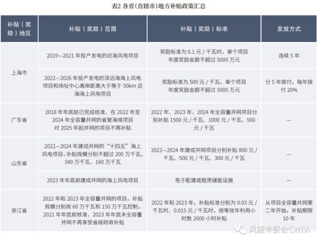 2020年1月20日,財(cái)政部、國(guó)家發(fā)展改革委、國(guó)家能源局印發(fā)《關(guān)于促進(jìn)非水可再生能源發(fā)電健康發(fā)展的若干意見》進(jìn)一步明確,新增海上風(fēng)電和光熱項(xiàng)目不再納入中央財(cái)政補(bǔ)貼范圍,按規(guī)定完成核準(zhǔn)(備案)并于2021年12月31日前全部機(jī)組完成并網(wǎng)的存量海上風(fēng)力發(fā)電和太陽(yáng)能光熱發(fā)電項(xiàng)目,按相應(yīng)價(jià)格政策納入中央財(cái)政補(bǔ)貼范圍。這意味著,自2022年起,我國(guó)海上風(fēng)電項(xiàng)目不再納入中央財(cái)政補(bǔ)貼范疇,海上風(fēng)電開發(fā)進(jìn)入地方補(bǔ)貼接力時(shí)期。