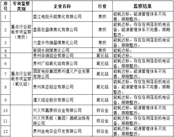 關于2021年貴州省國家工業(yè)專項節(jié)能監(jiān)察結果的公示