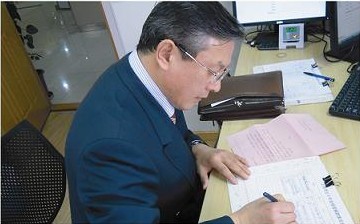 公司代表在捐款薄上簽署