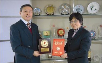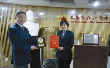 紅十字會代表向公司贈牌證書