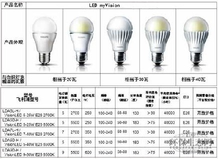 燈泡型LED燈“LED myVision”方面,將推出與E26燈口的20瓦、30瓦及40瓦白熾燈泡相當(dāng)?shù)漠a(chǎn)品。與20瓦及30瓦相當(dāng)?shù)漠a(chǎn)品的色溫為2700開爾文和6500開爾文,與40瓦相當(dāng)?shù)漠a(chǎn)品的色溫為6500開爾文。設(shè)想的實(shí)際銷售價(jià)格方面,與20瓦白熾燈泡相當(dāng)?shù)漠a(chǎn)品為2000日元左右,與30瓦相當(dāng)?shù)漠a(chǎn)品為2500日元左右,與40瓦相當(dāng)?shù)漠a(chǎn)品為3000日元左右。配光角度方面,色溫為2700開爾文的產(chǎn)品為130度,6500開爾文的產(chǎn)品為180度。到2011年底,計(jì)劃在日本國(guó)內(nèi)推出已在海外發(fā)售的配光角度為310度的燈泡型LED燈。 該公司表示,“LED myVision”采用了應(yīng)用該公司Remote Phosphor技術(shù)的LED模塊,因而可實(shí)現(xiàn)高效、均勻的發(fā)光。Remote Phosphor技術(shù)的原理是,在模塊內(nèi)拉開距離設(shè)置多個(gè)集成了藍(lán)色LED芯片及熒光體的散射板,將芯片發(fā)出的光集中轉(zhuǎn)換成白色光。