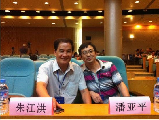會間,瀚藝集團總裁潘亞平(右)與格力原董事長朱江洪(左)親切交談并合影留念