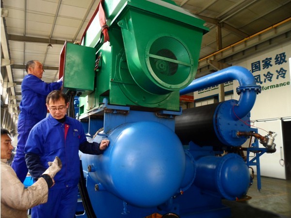 瀚藝首臺(tái)開(kāi)啟式螺桿低溫冷水機(jī)組成功下線現(xiàn)場(chǎng)