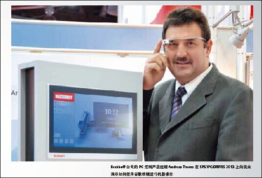 去年在德國紐倫堡舉辦的“2013 年德國紐倫堡工業(yè)自動化及元件展覽會(SPS/IPC/DRIVES 2013)上,Beckhoff 展出了通過專注于谷歌眼鏡的技術研究開發(fā)而成的針對機械操作的最新解決方案。有了具有上網功能的谷歌眼鏡,狀態(tài)或對話消息可以通過一個頭戴式顯示器直接投射到人眼中。在線信息和通信也可以用這種創(chuàng)新的設備實現(xiàn),且錯誤信息可以使用觸摸板進行確認。Beckhoff 公司的 PC 控制產品經理 Andreas Thome 堅定地認為,谷歌眼鏡是互聯(lián)網和自動化技術相融合推動工業(yè) 4.0 發(fā)展的最突出的例子。 Beckhoff 公司的 PC 控制產品經理 Andreas Thome 在 SPS/IPC/DRIVES 2013 上向觀眾演示如何使用谷歌眼鏡進行機器操作。 是什么讓谷歌的這些“增強現(xiàn)實眼鏡”從競爭中脫穎而出,用作工業(yè)環(huán)境中的控制元件? Andreas Thome:谷歌眼鏡配置包括頭戴式顯示器、攝像頭、麥克風和用作揚聲器的骨傳導耳機 — 它還配備了振動傳感器并在耳機側面集成了一個觸摸板。有了這些功能,谷歌眼鏡非常適合用于可視化、診斷和服務,以及技術干預和個人通信。不同于傳統(tǒng)的控制理念,該設備屬于被稱為“可穿戴計算”的創(chuàng)新技術 — 一組每天可以通過用戶佩戴來大幅提高其連通性的設備。事實上,很多這些設備現(xiàn)在都已經具有現(xiàn)代智能手機所具備的所有功能。更重要的是,谷歌眼鏡型設備使用起來都很方便,因為其半透明遮陽板符合人體工學,且主要都是免提操作。最大的優(yōu)點在于 — 也著眼于工業(yè)自動化 — 現(xiàn)有的移動計算技術可以在我們的感官知覺或我們的肢體動作沒有任何限制的情況下使用 — 而且無需電線或電纜。 如何將谷歌眼鏡與 PC 控制整合在一起? Andreas Thome:使用 Beckhoff 的 TwinCAT 自動化軟件可以將谷歌眼鏡與控制技術輕松集成在一起。眼鏡與萬維網服務器通訊,該服務器提供了通過 TwinCAT 控制的機器狀態(tài)信息。眼鏡接收此狀態(tài)信息并以信號或錯誤消息的形式表現(xiàn)出來,甚至還可以指出任何問題的確切位置。確認和復位機器狀態(tài)等工作也可在現(xiàn)場通過谷歌眼鏡完成。 在哪些情況下可以使用此方案? Andreas Thome:潛在的應用場景可以被歸類為“直接或間接”。例如,操作人員可以使用眼鏡“直接”監(jiān)控機器或甚至采取行動來直接改變或更正機器狀態(tài),而不總是需要在現(xiàn)場完成。對于大型機器和生產設備,操作人員需要在設備周圍走動并檢查特定臨界點的工藝狀態(tài)值,同時查看設備是運作情況。必要時,操作人員可以采取手動操作,因為雙手都是自由的!伴g接”選項涉及到信息的收集和保存,不完全依賴于正在運行的進程。這些選項包括,例如,研究制造商有關特定機器組件的文檔資料,在 Internet 上搜索信息,并通過電子郵件和支持視頻聊天的聊天工具進行人際互動。然而,直接和間接應用的組合也是可能的。即使一臺機器正在運行,操作人員也可以與專家聯(lián)系并通過眼鏡將正在運轉的機器的視頻發(fā)送給專家,以咨詢一些具體的問題。隨后,專家可以給現(xiàn)場操作人員提供技術支持 — 以視頻或語音消息的形式 — 這樣就可以采取相應的糾正措施。這是被描述為“你看到的就是我看到的”(WYSIWIS)的 IT 概念也可以在工業(yè)環(huán)境下應用的范例。 靜態(tài)和動態(tài)的機器狀態(tài)信息可以被投射到谷歌眼鏡的頭戴式顯示器上。 如果出現(xiàn)錯誤,谷歌眼鏡會輕輕振動,提醒操作人員注意出錯消息。一旦錯誤被糾正,該消息可以直接通過增強現(xiàn)實眼鏡復位。 有關在日常生活中使用這種新的控制技術有什么新的想法嗎? Andreas Thome:有許多不同的方法來實現(xiàn)。例如,維修工程師可以使用集成的攝像頭捕捉到電機或限位開關的 QR 碼,然后檢索有關其功能、歷史狀態(tài)或當前狀態(tài)的信息。另一個辦法是瀏覽包含機器控制軟件相關信息的網站 — 大小為 640×360 像素的分辨率,無需使用鼠標 — 這將是可行的,如果原始資料被格式化為與增強現(xiàn)實眼鏡同時使用。操作人員可以查找由制造商定義的計算機設置,然后采取適當?shù)男袆印R部梢跃帉懺诠雀柩坨R上本地運行的特殊應用程序,并能夠通過 WLAN 使用如 OPC UA 或 TwinCAT ADS 等協(xié)議建立與機器控制計算機的連接。作為谷歌眼鏡技術研究的一部分,Beckhoff 提供二進制和模擬變量的實時可視化應用程序作為本地程序。在所有這些情況下,可以顯示狀態(tài)數(shù)據(變量,誤差)。此外,操作人員可以使用谷歌眼鏡來修改設備設置或周期,如開始或停止生產步驟。 未來,谷歌眼鏡和類似的增強現(xiàn)實眼鏡將取代傳統(tǒng)控制面板和操作理念嗎? Andreas Thome:不會。憑借其眾多的選件,谷歌眼鏡是提高操作和控制理念的杰出開發(fā)成果,但它并不能夠成為一個完整的替代裝置來控制機器或生產設施。傳統(tǒng)的機械控制終端(帶觸摸屏或帶鍵盤的顯示器)不能完全被取代 — 因為其分辨率更高且可讀性更好,而且集成了關鍵的控制元件,如急停開關或操縱桿。也可以這樣說,可以實現(xiàn)基于谷歌眼鏡的完整“無接觸控制”的愿景。我們發(fā)現(xiàn),未來,最有可能的是傳統(tǒng)的接觸和創(chuàng)新的非觸摸方法的有機結合。請記住,觸碰增強現(xiàn)實眼鏡的側面比給出語音命