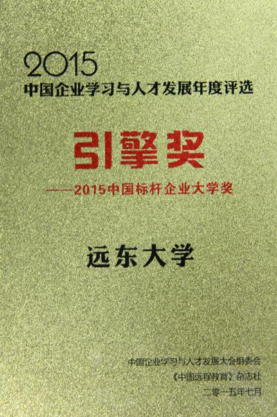 近日,“2015中國(guó)企業(yè)學(xué)習(xí)與人才發(fā)展大會(huì)暨(第四屆)中國(guó)企業(yè)大學(xué)年會(huì)”在北京舉行,知名專家、企業(yè)總裁、企業(yè)大學(xué)校長(zhǎng)、HR部門精英、培訓(xùn)中心高管及經(jīng)理,遠(yuǎn)程與繼續(xù)教育、職業(yè)教育、培訓(xùn)機(jī)構(gòu)負(fù)責(zé)人等約600人參會(huì)。在本次大會(huì)上,遠(yuǎn)東控股集團(tuán)遠(yuǎn)東大學(xué)與中國(guó)電信學(xué)院、中國(guó)移動(dòng)學(xué)院、招銀大學(xué)(招商銀行總部培訓(xùn)中心)、新奧大學(xué)等一同榮獲“引擎獎(jiǎng)——2015中國(guó)標(biāo)桿企業(yè)大學(xué)獎(jiǎng)”,遠(yuǎn)東控股集團(tuán)首席行政官、遠(yuǎn)東大學(xué)執(zhí)行校長(zhǎng)周東佼出席了此次會(huì)議并做分享。