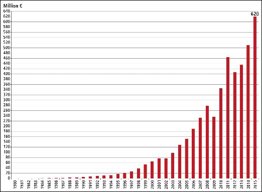 圖片注釋: 德國倍福自動化有限公司銷售額增長情況 圖片及文字下載: http://www.beckhoff.com/cn/press/2016/pr201611.htm