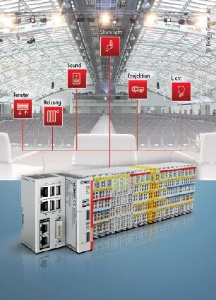 圖片注釋: 通過倍福基于 PC 的控制技術(shù),所有多媒體和樓宇服務(wù)應(yīng)用整合在同一個中央控制平臺上,從而顯著降低硬件和軟件,并具有用于直接與云端連接的選項(xiàng)。