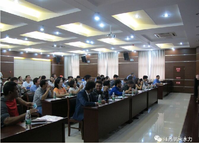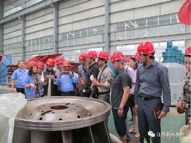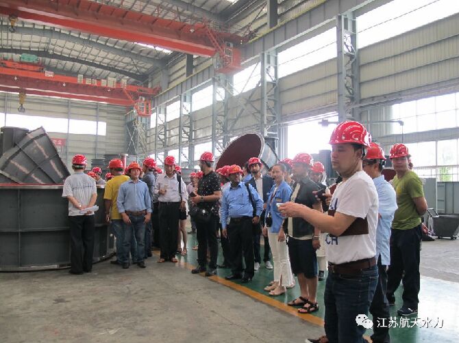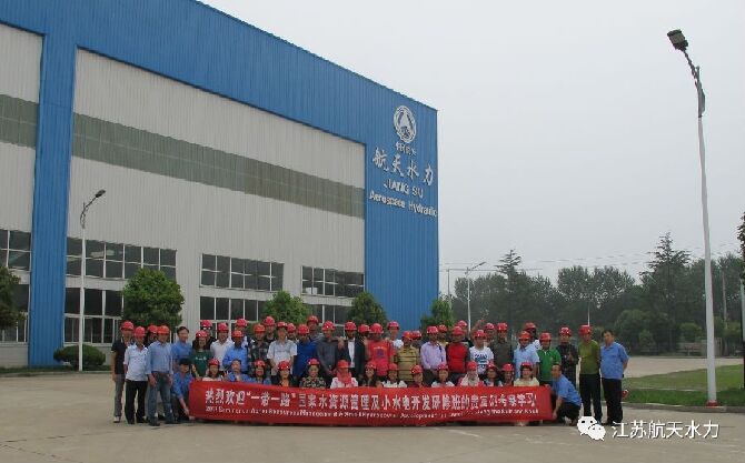 2017年6月30日,“一帶一路”國(guó)家水資源管理及小水電開(kāi)發(fā)研修班的貴賓在水利部杭州農(nóng)電所領(lǐng)導(dǎo)的陪同下,到江蘇航天水力設(shè)備有限公司考察學(xué)習(xí)。此研修班為商務(wù)部援外項(xiàng)目,有來(lái)自朝鮮、阿塞拜疆、阿富汗、亞美尼亞、孟加拉國(guó)、尼泊爾、老撾、多米尼克、蒙古、伊朗、緬甸和埃及等十二個(gè)國(guó)家共四十四位能源領(lǐng)域的官員及技術(shù)人員。其公司黨委書(shū)記薛世寬、銷售副總邵春兵和市場(chǎng)總監(jiān)盧燈權(quán)及國(guó)際貿(mào)易部的員工一起參與接待。