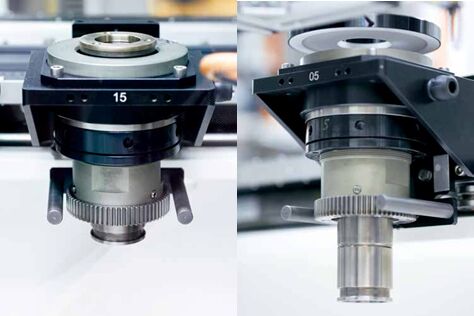 帶有上下芯棒(左圖和右圖)的 XTS 動(dòng)子沿著“帽形”或“杯形”方向拾取擴(kuò)散器。還可以看到的是用于在線掃描相機(jī)前面旋轉(zhuǎn)部件的鏈輪 緊跟旋轉(zhuǎn)工位后面的是用于檢測(cè)材料偏差情況的控制工位和用于檢查擴(kuò)散器底部的工位。第一個(gè) XTS 直線段的最后一個(gè)相機(jī)工位負(fù)責(zé)檢查法蘭是否有質(zhì)量缺陷。這意味著第一個(gè)直線段控制六個(gè)相機(jī)工位。加上完全一樣的線掃描和旋轉(zhuǎn)工位,總共有九個(gè)工位。