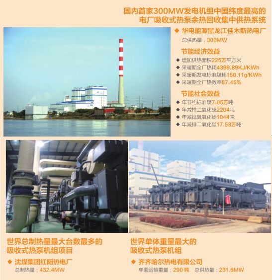 2009年開發(fā)全球首個(gè)吸收式熱泵余熱回收制熱系統(tǒng)用戶 有效解決火電廠冷凝熱排空問題 低成本解決大面積城市供熱 已有35家電廠使用該系統(tǒng)