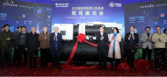 圖為光伏直驅(qū)變頻離心機(jī)系統(tǒng)“國(guó)際領(lǐng)先”鑒定會(huì)現(xiàn)場(chǎng)