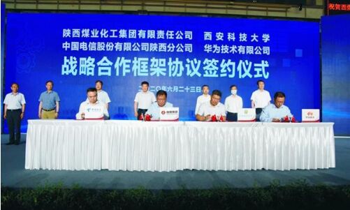 會(huì)上,陜煤集團(tuán)、西安科技大學(xué)、中國(guó)電信股份有限公司陜西分公司、華為技術(shù)有限公司共同聚焦為陜煤集團(tuán)打造“四化”建設(shè)專(zhuān)業(yè)團(tuán)隊(duì)、組織應(yīng)用成熟解決方案、快速形成行業(yè)試點(diǎn)示范、適用型人才培育培養(yǎng)等多個(gè)方向,支撐陜煤集團(tuán)數(shù)字化轉(zhuǎn)型戰(zhàn)略落地,共同提升各合作方的行業(yè)競(jìng)爭(zhēng)力和企業(yè)形象,簽訂了四方戰(zhàn)略合作框架協(xié)議。
